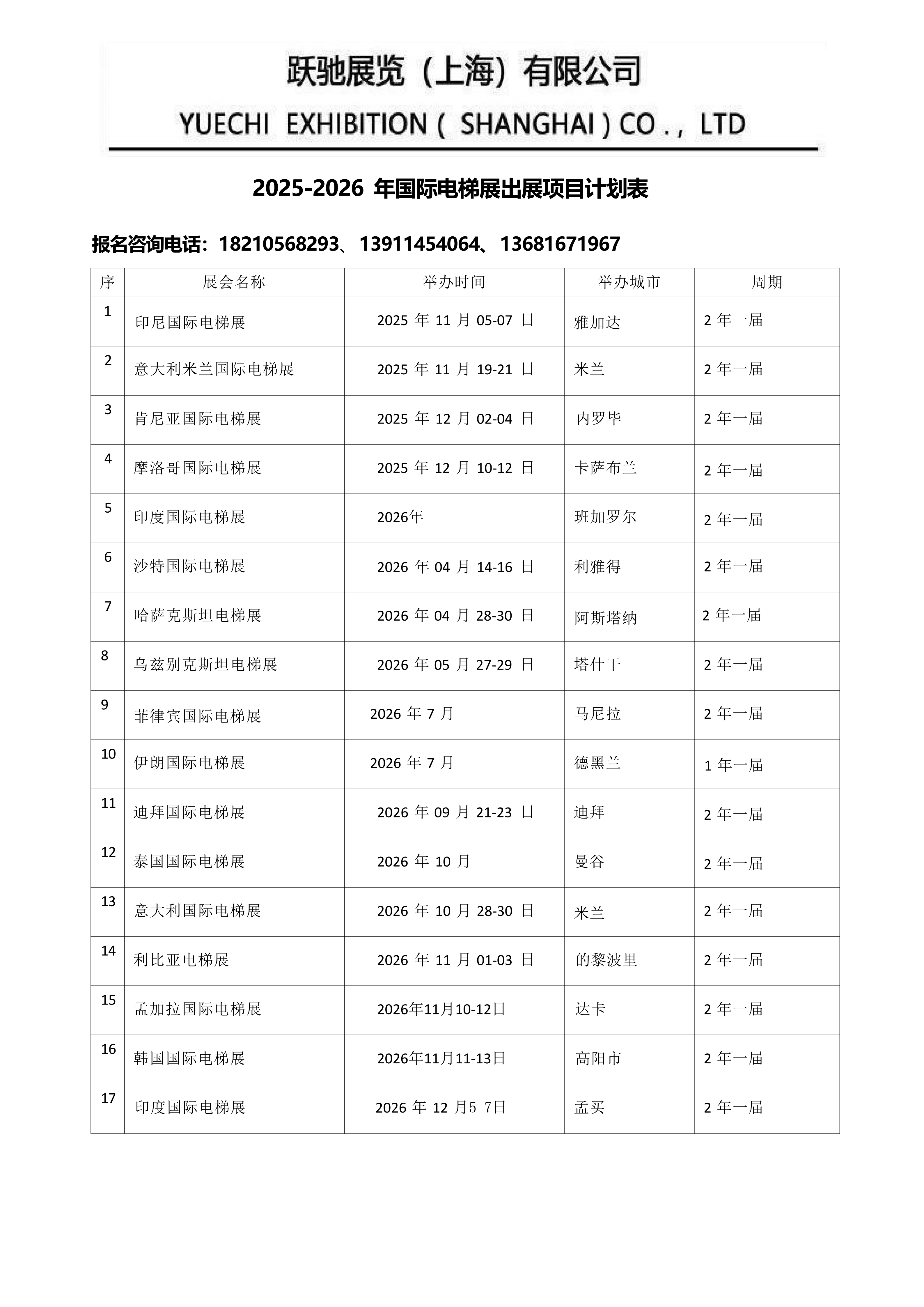 2025-2026年电梯展会计划表